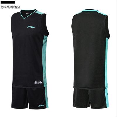 李宁(LI-NING)篮球服套装男球衣训练队服比赛球服速干透气运动服可定制印字号 标准黑/水池蓝 尺码备注