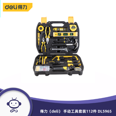 包装清单: | 得力(deli) 家用多功能五金工具箱手动工具套装电工维修工具箱家用应急包112件 DL5965 |