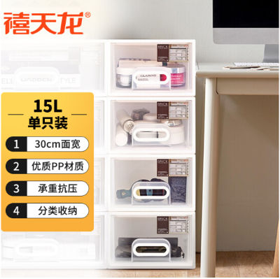 包装清单: | 禧天龙(Citylnog)5201 收纳箱收纳盒可叠摞抽屉式收纳柜桌面收纳 15L 300*450*205 * 1 |