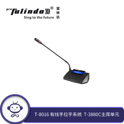 包装清单: | 富林达(proFulinda) T-8016 有线手拉手系统 手拉手会议室话筒 专业大型会议话筒系 T-3880C主席单元 |