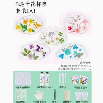 干花植物水晶滴胶diy材料包 5连干花杯垫套装