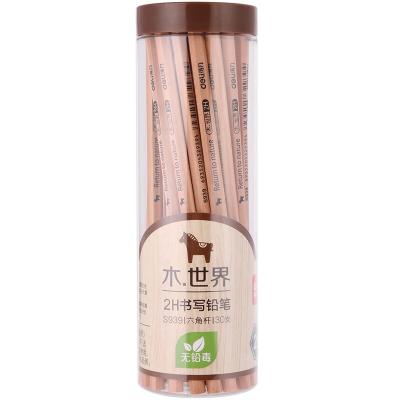 得力 木世界系列铅笔S939 原木铅笔 2H 六角笔杆 30支/筒 单筒装 黑色