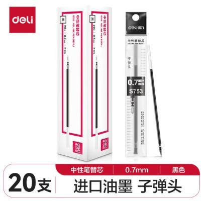 得力(deli)S753 0.7mm 黑色 子弹头中性笔笔芯 水笔签字笔替芯 20支/盒