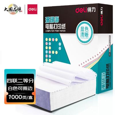 得力(deli) 241-4-1/2S 珊瑚海打印纸 四联二等分针式打印纸 可撕边电脑打印纸 全白出库送货单 1000页/箱