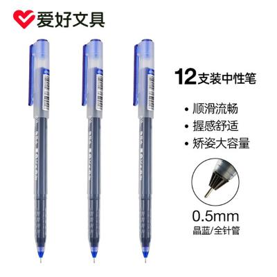 爱好(AIHAO) 0.5mm 全针管晶蓝色中性笔 巨能写大容量签字笔 笔杆 笔芯 一体化矫姿水笔47920
