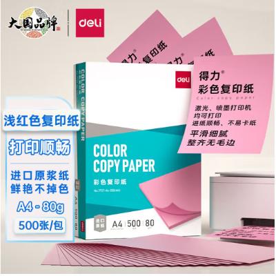 得力 彩色卡纸 80g A4 500张/包 粉色