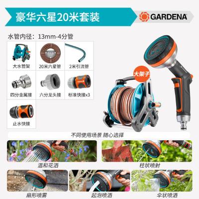 包装清单: | 嘉丁拿(GARDENA) 高压喷水枪浇花洗车水管软管收纳水管车喷头套装浇花神器 合金六星20米+五功能金属水枪 |