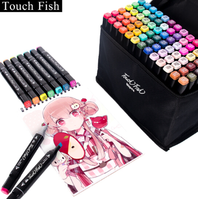 Touch fish 马克笔套装 水彩笔双头绘画笔黑杆马克笔 动漫80色/盒