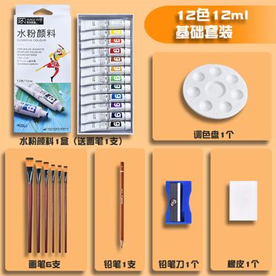 美邦祈富 水彩水粉颜料套装初学者小盒便捷绘画管状颜料可水洗调色盘工具 水粉12色12ml 基础套装