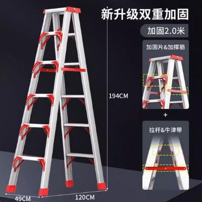 家用加厚铝合金折叠梯室内装修2米人字梯 新升级双重加固+加撑款2.0米