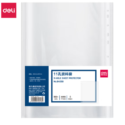 包装清单: | 得力(deli) 64050 11孔透明文件袋 A4插页文件快递袋活页文件资料袋 100个装 |