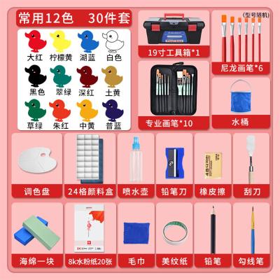 包装清单: | 美邦祈富 水粉颜料套装美考美术生专用黑板报小学生初学者 安全无毒幼儿园儿童宝宝手指画颜料 12色套装 100ml |