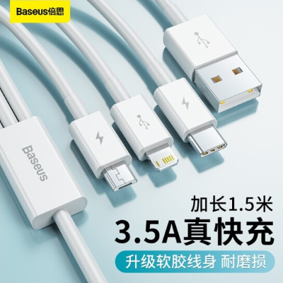 倍思 一拖三数据线 苹果/Type-c/安卓 三合一手机充电器线 1.5米 白色