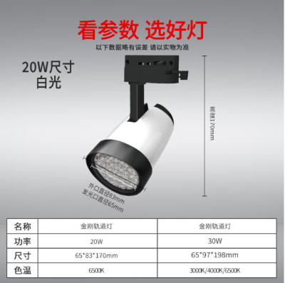 包装清单: | 开尔照明 射灯明装筒灯LED 金刚轨道灯 20W 黑白白光 65*83*170 * 1 |