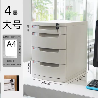 A4文件夹收纳盒带锁塑料文件盒 大四层 象牙白
