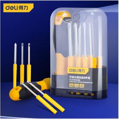 得力(deli)带磁可换头螺丝批套装 一字十字多功能螺丝刀 9件套 DL636009B