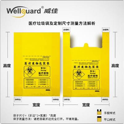 包装清单: | 威佳 大号医疗垃圾袋120L黄色医院诊所用50只医废平口式垃圾袋 100*110cm 5丝 |