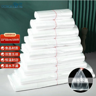登比 白色塑料袋购物袋手提方便袋垃圾袋食品袋打包袋 白色塑料袋加厚无异味30*48cm/150只(3卷)