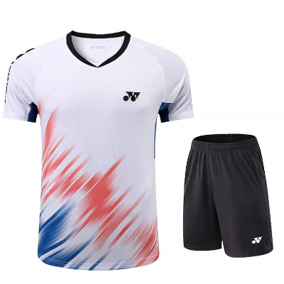包装清单: | 羽毛球服速干套装 6267(白色上衣配黑色裤子)男女同款 下单备注尺码(XS-XXXL) * 1 |