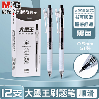 晨光(M&G)大墨王按动中性笔 ST笔头 速干软握 黑色 0.5 黑笔 12支 AGPJ9001