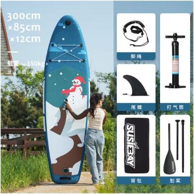 充气桨板 水上海上成人钓鱼路亚浆板船 浮板桨板船划水板冲浪板 雪人 送配件 300*85*12cm