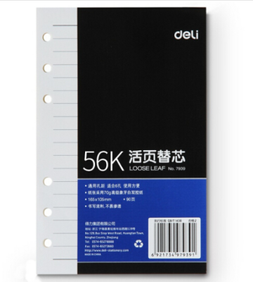 | 包装清单: | 得力(deli) 7939 象牙白活页替芯(深蓝)-90页-A6(本) |