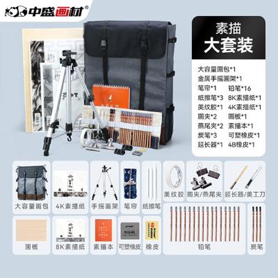 包装清单: | 中盛画材(transon) 素描套装工具折叠画架画板4K写生素描纸初学者素描本画袋美术画袋炭笔笔帘 |