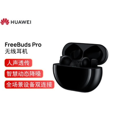 华为HUAWEI FreeBuds Pro 主动降噪真无线蓝牙耳机/入耳式耳机/环境音/人声透传/双连接/无线充版 (碳晶黑)