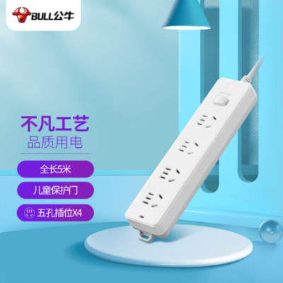 公牛(BULL) GN-410 新国标插座/插线板/插排/排插/接线板/拖线板 4位总控 全长5米