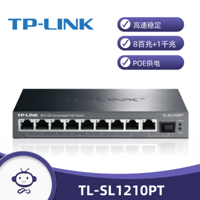 水星(MERCURY) S108D 8口百兆交换机 钢壳桌面 交换机商品名称:TP-LINK TL-SL1210PT(8口PoE) 8百兆+1千兆+1SFP非网管PoE交换机 8百兆PoE口 总功率121W 钢壳桌面 |