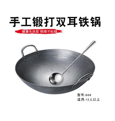 臻世铁器手工双耳铁锅章丘边锅炒菜锅无涂层不粘熟铁锅厨师食堂餐馆燃气灶柴火灶通用 60cm 双锅耳手工锻打铁锅(12人以上)