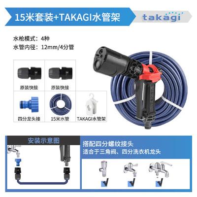 包装清单: | TAKAGI 增压水枪花园家庭清洁浇水神器水管软管工具洗车 15米四分挂架套装(送螺丝) |