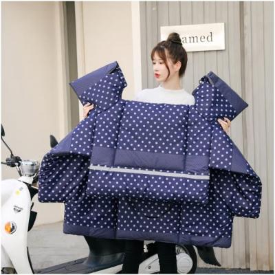 电动车挡风被 冬季加绒加厚防水 藏青圆点侧翼款双面防水双系绳 连体款