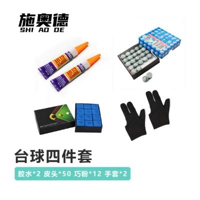 施奥德 台球用品四件套 含皮头10mm50个 巧粉12个 手套2只 强力胶2个