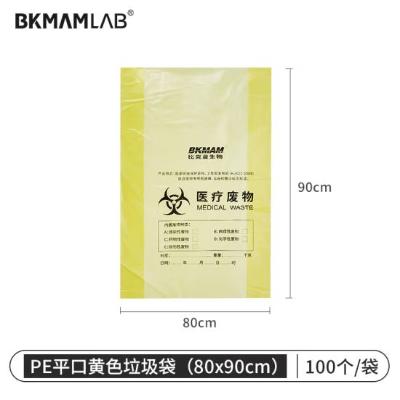 比克曼生物(BKMAM)医疗废物塑料手提平口垃圾袋黄色 加厚回收包装袋 黄色 80*90cm 平口 100个/袋