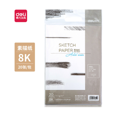 包装清单: | 得力(deli) 73607 8K素描纸 110g美术写生手绘临摹初学者速写铅画纸 20张/包 |