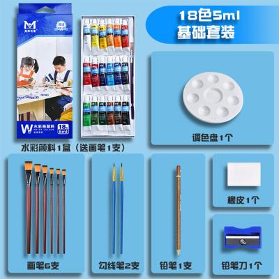 美邦祈富 水彩水粉颜料套装初学者小盒便捷绘画管状颜料可水洗调色盘工具 水彩18色5ml 基础套装