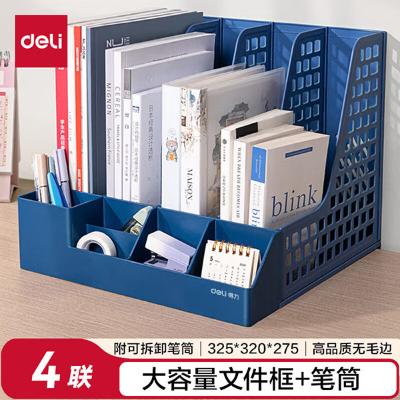 包装清单: | 得力(deli)4联带笔筒多功能桌面档案收纳盒文件框栏篮盘书立架 办公用品多层文件置物架资料架镂空 蓝色 |