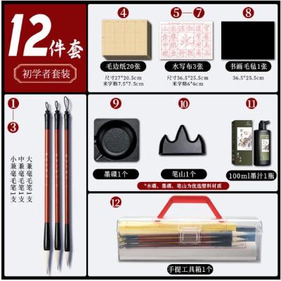 马利(Marie's)文具书法毛笔套装笔墨纸砚 12件套