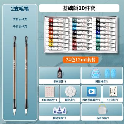美邦祈富 国画颜料初学者套装 矿物质颜料国画专用工具套装 24色12ml 基础版(10件套)