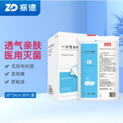 包装清单: | 振德 医用自粘敷贴 10cm*15cm 50片/盒 *1 |