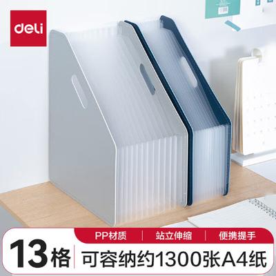 得力(deli)13格A4立式大容量风琴包 多层可伸缩文件框 办公资料文件保护 63952浅灰色