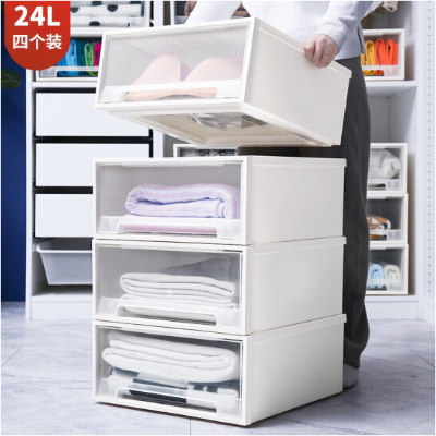 禧天龙(Citylnog)5010 收纳盒 24L透明抽屉式收纳柜收纳箱大号43.5*45*19.5cm 4个装