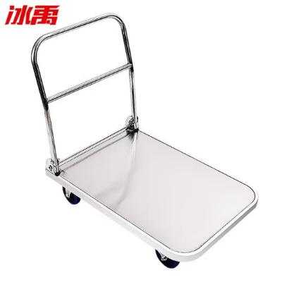 冰禹 BJls-259 不锈钢平板车 轻音折叠小推车 防腐蚀搬运车推货车 90*60cm轻音轮800斤