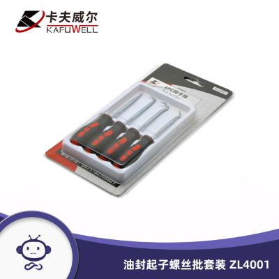 | 包装清单: | 卡夫威尔 4件套油封起子螺丝批套装 密封圈垫圈拉拔器钩子组 直角弯钩 ZL4001 |