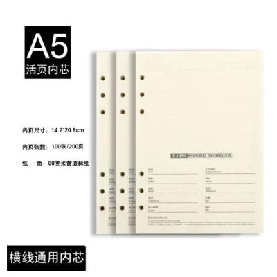 活页内芯笔记本A5加厚6孔横线内页(100张200页)活页本可拆卸替芯记录本定制