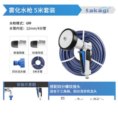 包装清单: | TAKAGI 家用微细喷雾园艺浇花水枪喷头洗车冲洗浇花神器 5米套装蓝色【配四分龙头接】 |