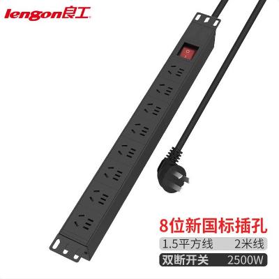 良工 PDU插座 8位 双断开关 1.5平方 2米线 10A