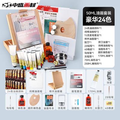 包装清单: | 中盛画材(transon) 24色大支油画颜料套装绘画工具初学者全套材料用品新手专业油彩染料入门专用画画教程画箱 |