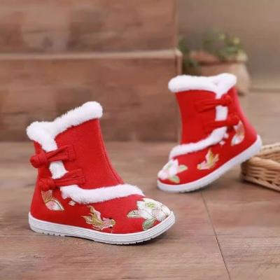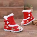 汉服鞋子民族风保暖鞋冬季红色荷花款